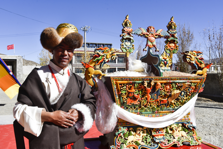 中國西藏網(wǎng)訊 “西藏的雕刻技藝發(fā)展歷史可以追溯到吐蕃時期(公元七世紀),作為一門純手工的雕刻技藝,當時雕刻產(chǎn)品生產(chǎn)量較少、價格昂貴,制作過程復雜而精密,雕刻出來的佛像和鐫刻的文字以其質量和獨具特色的風格延續(xù)成為了當時富貴家庭的珍藏品,讓雕刻技藝也成為了西藏老百姓心目中很崇拜的一門技術。”11月10日,在西藏自治區(qū)日喀則市白朗縣瑪鄉(xiāng)土古村,記者見到了土古喜格傳統(tǒng)雕刻技藝的第四代傳承人果杰。