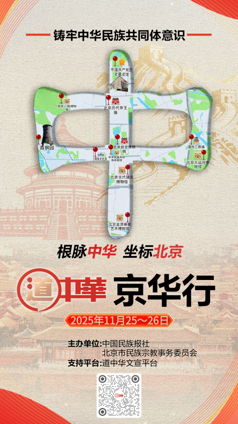 中國(guó)西藏網(wǎng)訊 11月25日,由中國(guó)民族報(bào)社(“道中華”文宣平臺(tái))和北京市民族宗教委聯(lián)合主辦的“道中華·京華行”主題活動(dòng)在北京正式開啟,一場(chǎng)講述鑄牢中華民族共同體意識(shí)故事之旅拉開帷幕。