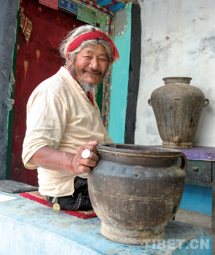 《守墓人今安在?》《次仁烱寺——晉美林巴的歸隱地》《雪康莊園——老莊園時光再現(xiàn)》《“神仙故鄉(xiāng)”的陶藝世界》等都是我非常喜歡讀的章節(jié)。通過這些章節(jié),可以了解傳說中始于吐蕃時期的守墓人制度,以及“現(xiàn)代守墓人”強(qiáng)巴曲桑老人的生活:“到藏王墓19年來,他幾乎沒有回過家中,雖然白日村幾乎就在藏王墓能看見的位置……每天早晨,要圍繞陵區(qū)小走一圈,觀察墓地上是否有裂縫,是否有塌方的痕跡”。雪康莊園朗生的后代、70歲的維色老人怡然自得的笑容,“神仙故鄉(xiāng)”堆巴村77歲的制陶匠人次仁古桑的微笑,堆巴諧欽傳承人格桑老人含蓄的笑容,令人難忘。他們刻滿歲月風(fēng)霜的臉上綻放的質(zhì)樸笑容,如陽光般,充滿對陌生人暖暖的善意。他們的笑容與故事具有直抵人心的感染力,可以感受到他們內(nèi)心的安寧以及對當(dāng)下生活全然滿足的幸福,同時也可以讓人在紛擾的現(xiàn)代生活中尋得內(nèi)心的平靜與力量。
