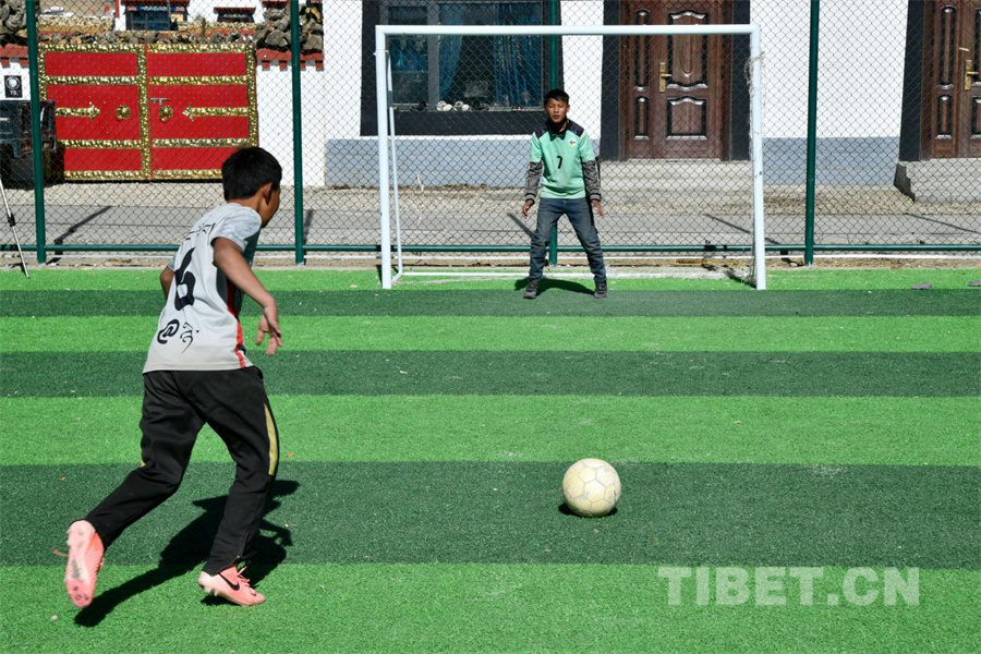 圖為定日縣長所鄉(xiāng)森嘎村的足球少年們擁有了自己第一塊標(biāo)準(zhǔn)化的足球場地(攝于2026年1月5日)攝影:趙振宇