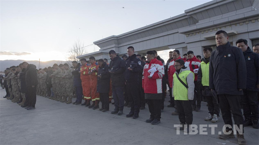 圖為西藏定日6.8級地震遇難同胞悼念儀式在受災(zāi)最嚴(yán)重的定日縣長所鄉(xiāng)舉行(攝于2025年1月13日)攝影:趙振宇