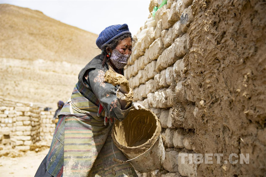 圖為定日縣曲洛鄉(xiāng)嘎白村的村民正在用中國鄉(xiāng)村發(fā)展基金會的10萬元資金修建畜圈。修建所需的材料都來自于受災(zāi)村民自己坍塌的老房子的土磚,全村31戶村民每戶派出一名人員參與畜圈建設(shè),每天會獲得150元的務(wù)工報酬(攝于2025年2月27日) 攝影:趙振宇