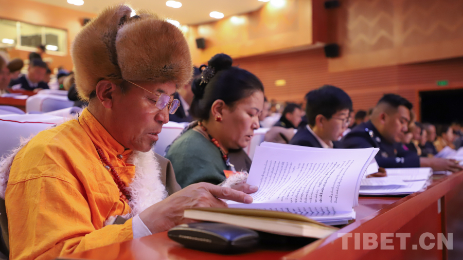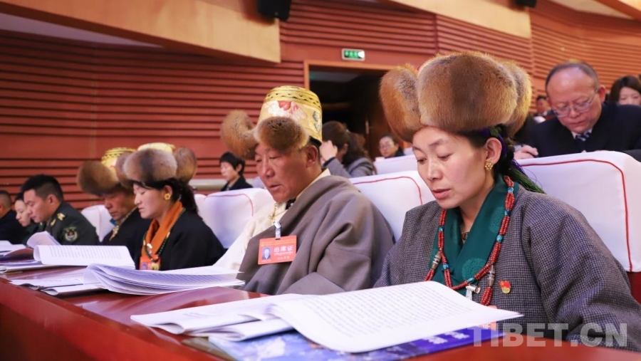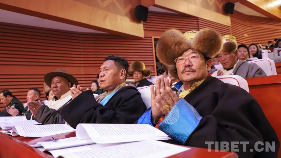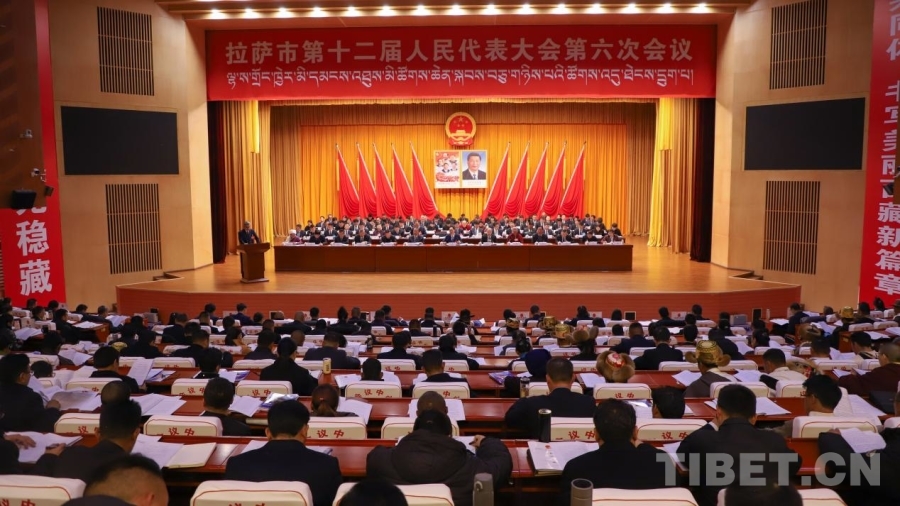 圖為拉薩市十二屆人大六次會(huì)議開(kāi)幕會(huì)現(xiàn)場(chǎng) 攝影:賈華加