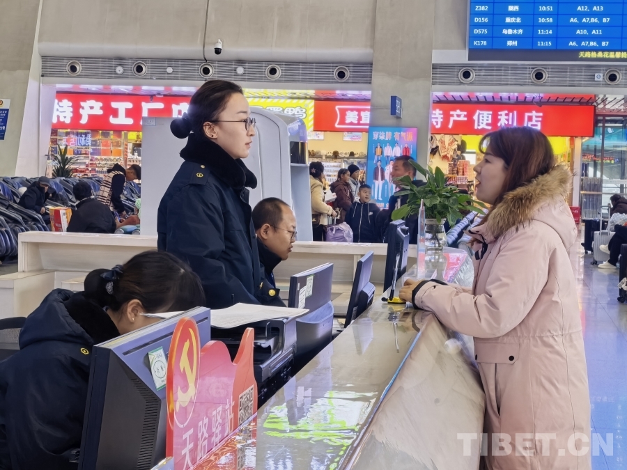 在西寧站內(nèi),“天路格?;ā狈张拈_展,不僅圍繞著電子設備充電、衛(wèi)生間保障、票務退改簽等日常場景,將便捷服務融入出行全鏈條,還動態(tài)調(diào)配10余名志愿者下沉一線,與各崗位工作人員協(xié)同聯(lián)動。