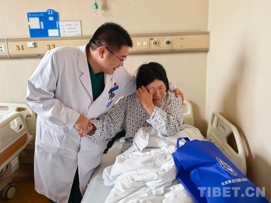 圖為患者西嘎曲珍難掩感激的淚水 攝影:周晴晴