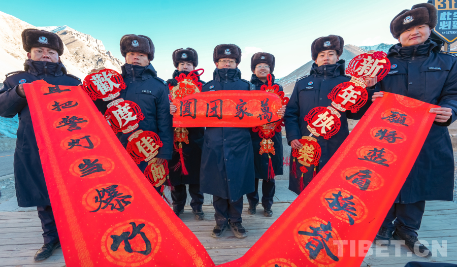 新春佳節(jié)來臨之際,雪峰巍巍。在海拔五千多米的珠峰大本營,西藏邊檢總站日喀則邊境管理支隊珠峰邊境派出所的民警,與來自天南地北的游客圍聚在一起。寒風中飄起溫暖的哈達,一聲聲“扎西德勒”伴著“新年好”,在離天空最近的地方交匯成真摯的祝愿。(中國西藏網(wǎng) 通訊員/葉軼)