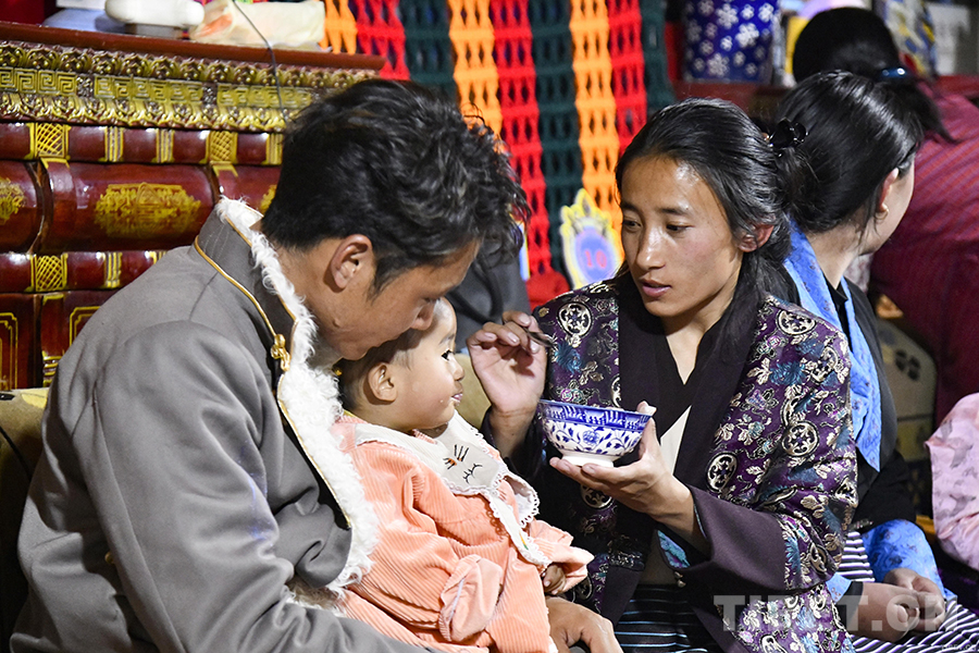 圖為尼瑪達(dá)瓦與妻子一起給孩子喂古突 攝影:趙振宇