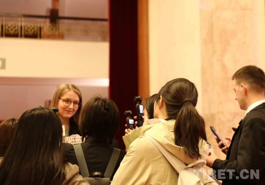 3月3日下午,全國政協(xié)十四屆四次會議新聞發(fā)布會召開前,俄羅斯報記者扎杰拉?斯維特蘭娜接受采訪。攝影:劉莉