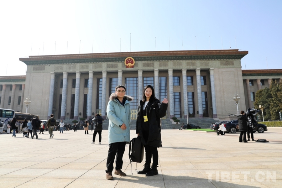 3月3日下午,本網記者在人民大會堂前,準備參加全國政協(xié)十四屆四次會議新聞發(fā)布會。攝影:劉莉