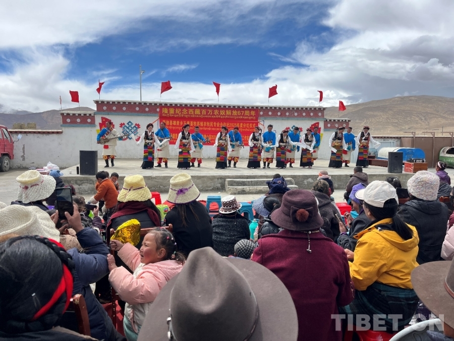 活動現(xiàn)場,當地干部群眾共同回顧西藏民主改革67年來的滄桑巨變,講述在黨的堅強領導下,雄麥鄉(xiāng)農牧民從脫貧致富到依托合作社實現(xiàn)共同增收的幸福歷程。隨后,當地藏戲隊、文藝隊帶來精彩表演,用獨具民族特色的文藝形式歌頌黨的好政策,展現(xiàn)新時代農牧民的精神風貌。