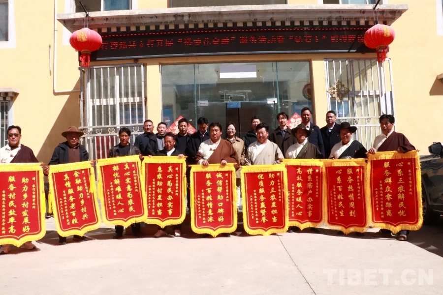 察雅縣吉塘鎮(zhèn)村民為送來“金融活水”的農(nóng)行察雅縣支行吉塘營業(yè)所獻(xiàn)上錦旗