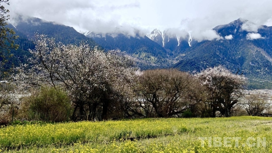 波密縣境內(nèi),近處油菜花金黃、桃樹粉黛,與遠(yuǎn)處的雪山、森林交相輝映,繪就一幅絕美的生態(tài)畫卷。攝影:次旦拉姆