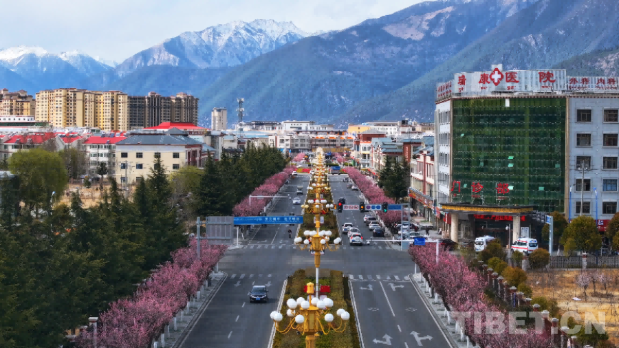 林芝市巴宜區(qū)道路兩旁,春花爛漫盛開,“桃花城”的畫卷在春光中徐徐展開。