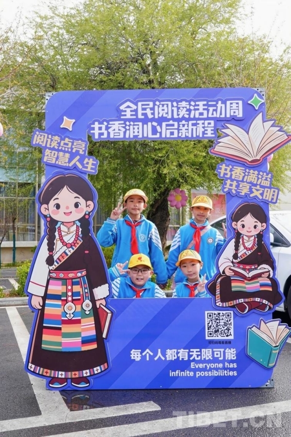 學生與“書香西藏”同框合影
