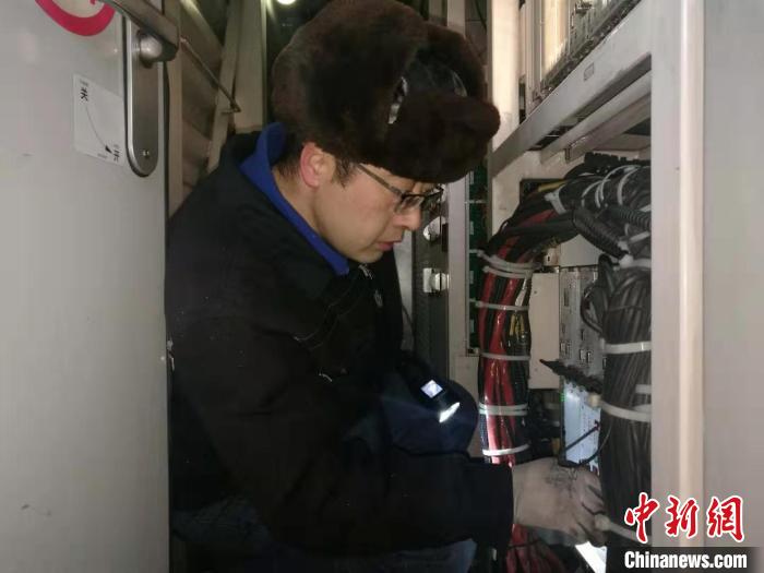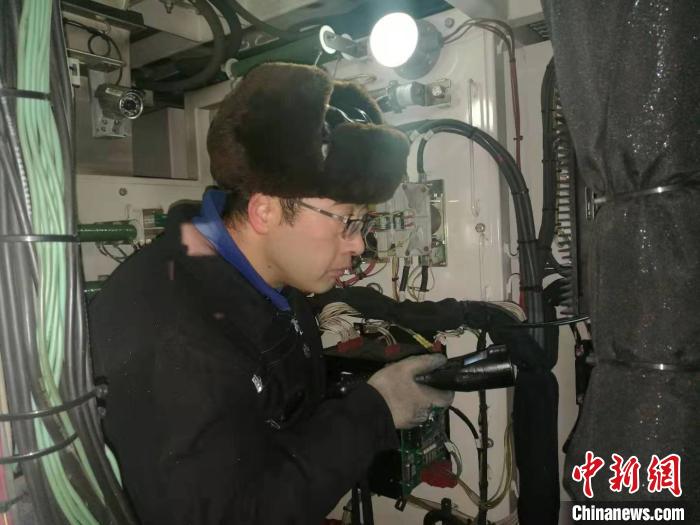 封小軍的雙腳踩在20厘米厚的積雪上,不時地發(fā)出“咯吱”的聲音,積雪迅速淹沒了他的腳踝。只見他手拿攝像手電,嫻熟地登上了機車,伴隨著一陣的轟鳴聲,內(nèi)燃機車發(fā)動了起來。
