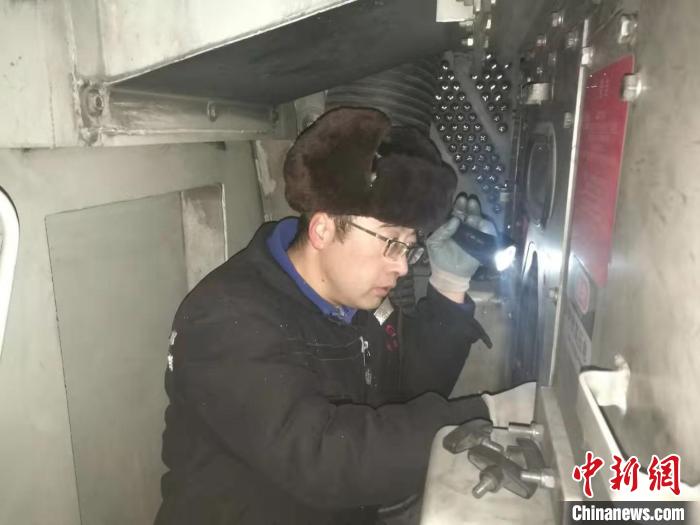 圖為封小軍檢查機車走行部。陳勇 攝