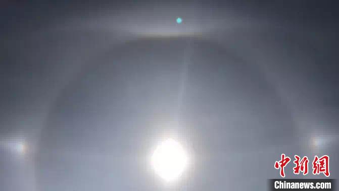 圖為青海玉樹上空出現(xiàn)幻日奇觀?!$娦馈z