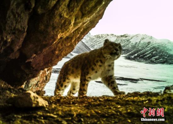 資料圖為紅外相機拍攝到的雪豹活動照片。青海省原上草自然保護中心供圖