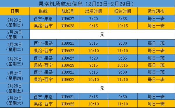 果洛機場航線恢復(fù)首周航班時刻表