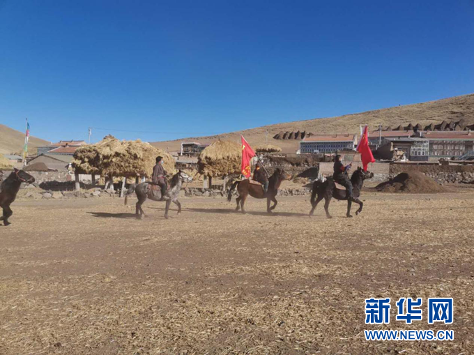 這是近日甘肅省甘南藏族自治州合作市佐蓋多瑪鄉(xiāng)的“馬背防疫隊(duì)”在給群眾宣傳疫情防控知識時發(fā)生的一幕。在防疫特殊時期,甘南州各階層積極獻(xiàn)力獻(xiàn)智,全力以赴在高海拔特殊環(huán)境下打贏這場疫情防控阻擊戰(zhàn)。