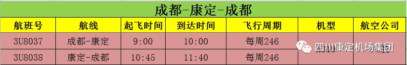 3月5日,記者從四川康定機場集團獲悉,甘孜州內(nèi)康定、稻城、格薩爾三大機場航線航班已于日前陸續(xù)恢復,調(diào)整后的航線航班為:成都—康定航班每周執(zhí)飛周二、周四、周六,特價機票單程低至399元,往返低至699元;成都—稻城航班每天1班;成都—格薩爾航班每周執(zhí)飛周一、周三、周五、周日。具體以預定時查詢?yōu)闇???刀C場集團航線航班查詢訂票熱線:028—61512291。