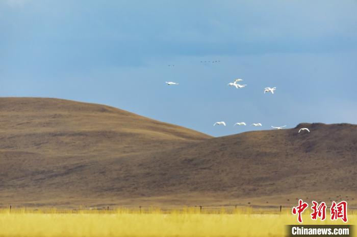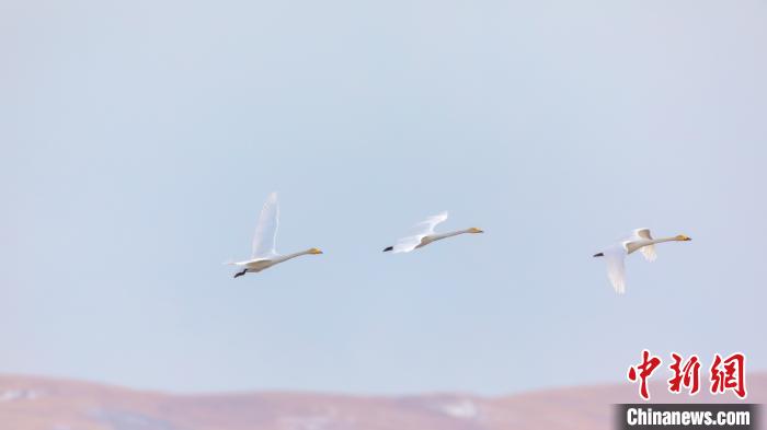 從西伯利亞飛來的大天鵝。若爾蓋縣融媒體中心供圖 攝