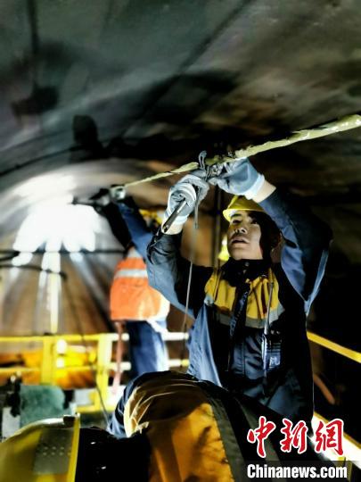 圖為錫鐵山接觸網(wǎng)巡檢工區(qū)職工們利用接觸網(wǎng)作業(yè)車(chē)對(duì)隧道森漏水情況進(jìn)行查看。尚增艷 攝