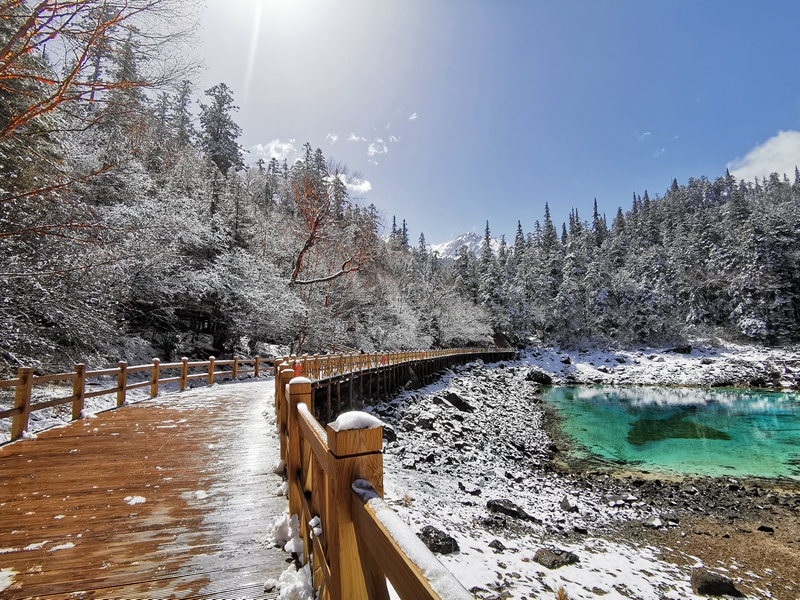 日前,四川九寨溝景區(qū)迎來一場瑞雪,整個景區(qū)銀裝素裹,遠處層巒疊嶂的山峰、松樹、紅色的楓葉與皚皚白雪完美融合倒映在水中。雪后九寨溝,宛若遺落人間的冰雪王國。[詳細]