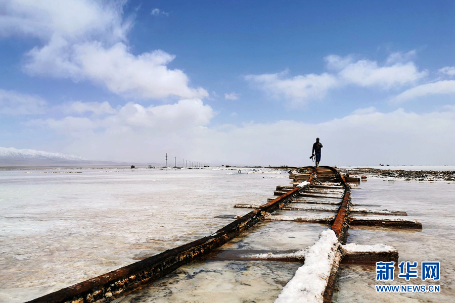 和風(fēng)爽,碧空無垠。行走在茶卡鹽湖景區(qū),腳下的鹽??┲ㄗ黜?,湛藍(lán)的天空下,無際的“白?!敝械褂爸荒ㄉ钏{(lán);南來北往的游客揮舞著紗巾,在鏡頭前喜笑顏開……