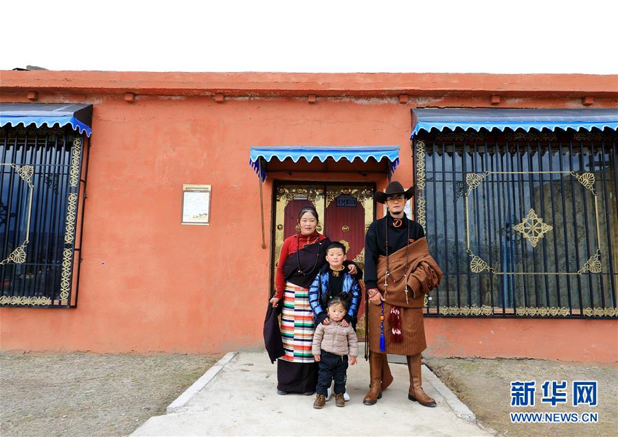 在四川甘孜藏族自治州理塘縣村戈鄉(xiāng)芒康村,村民降央斯郎一家在拍攝全家福(3月22日攝)。 新華社發(fā)