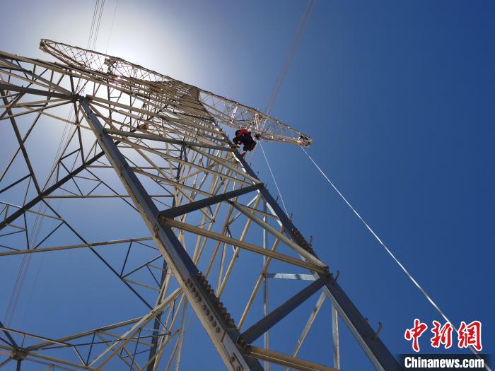 5月17日,在海拔4700多米的五道梁地區(qū),在“電力天路”±400千伏柴拉線636號塔上,3名作業(yè)人員正在更換絕緣子串,塔下6名作業(yè)人員在全力配合,工作負(fù)責(zé)人馬興義正仰頭觀察著塔上的一舉一動,時不時提醒工作注意事項。