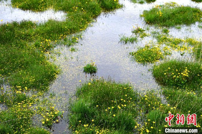 小黃花在花湖沼澤中盛開。安源 攝