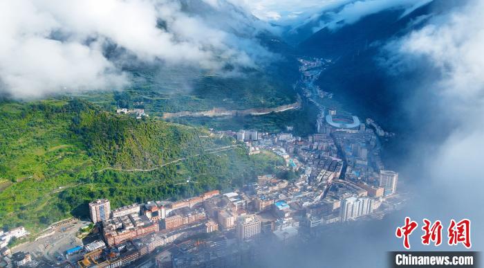 “跑馬溜溜的山上,一朵溜溜的云喲;端端溜溜的照在,康定溜溜的城喲……”6月22日,一場雨后,四川甘孜州康定市城區(qū)云霧繚繞,從空中俯瞰十分美麗??刀ㄅf稱“打箭爐”,三山環(huán)抱,折多河穿城而過。是一座歷史悠久的高原古城,這里既是情歌的故鄉(xiāng),又是茶馬互市的重鎮(zhèn)。