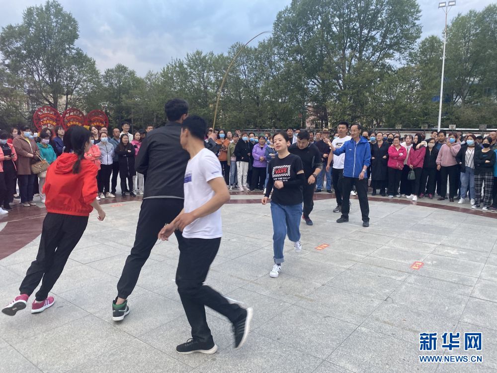 在青海省海北藏族自治州海晏縣西海鎮(zhèn)文化廣場(chǎng),當(dāng)?shù)厝罕娫谂e行跳繩比賽(7月6日手機(jī)拍攝)。新華社記者 張子琪 攝