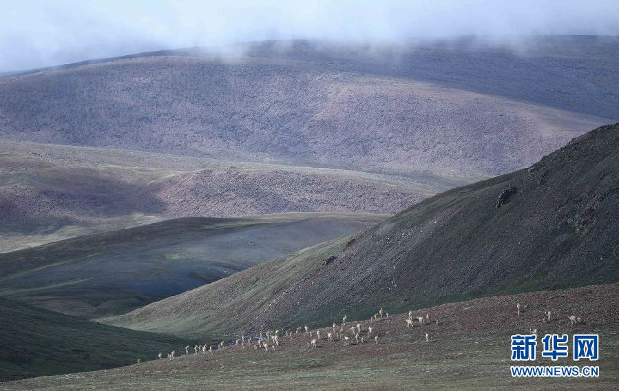 7月7日在可可西里卓乃湖區(qū)域拍攝的藏羚羊。新華社記者 張龍 攝