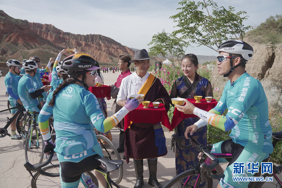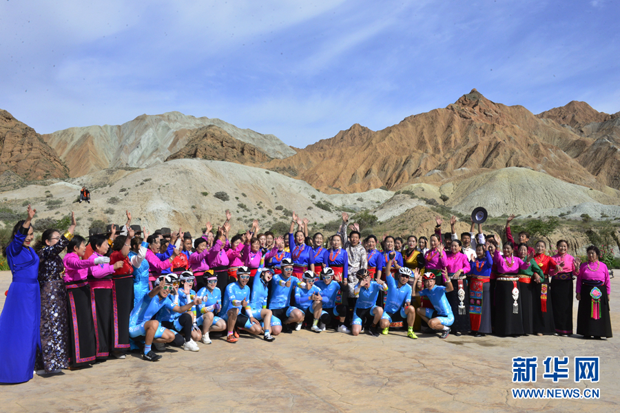 圖為“挑戰(zhàn)2020”環(huán)湖精英行“網(wǎng)紅”團(tuán)隊(duì)在貴德國(guó)家地質(zhì)公園準(zhǔn)備騎行。新華網(wǎng) 魚昊 攝