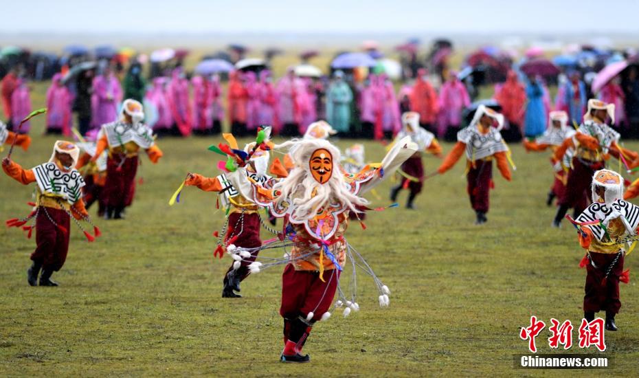 圖為毛埡草原上孩子們展示理塘藏戲。 劉忠俊 攝