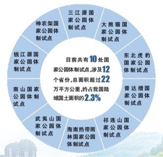 自2015年以來,我國開展了東北虎豹、祁連山、大熊貓、三江源、海南熱帶雨林、武夷山、神農(nóng)架、普達措、錢江源、南山等10處國家公園體制試點。試點區(qū)將各級各類自然保護地整合劃入國家公園試點區(qū)范圍,對山水林田湖草等自然生態(tài)系統(tǒng)實行統(tǒng)一管理、整體保護和系統(tǒng)修復。