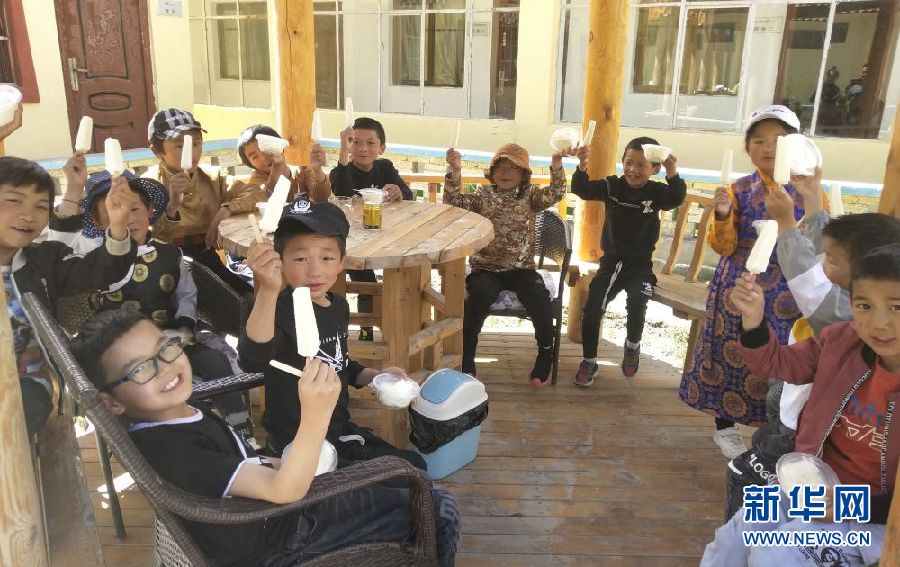 圖為雪山鄉(xiāng)小學(xué)生免費(fèi)品嘗雪糕。(圖片由受訪者提供)