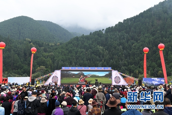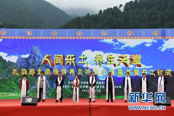 這是9月9日在甘南藏族自治州迭部縣拍攝的扎尕那生態(tài)旅游養(yǎng)生特色小鎮(zhèn)開工儀式現(xiàn)場。 新華社記者 范培珅 攝