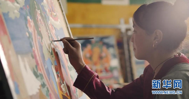 爐霍縣的貧困戶在唐卡實訓(xùn)基地免費學(xué)習(xí)唐卡技藝。