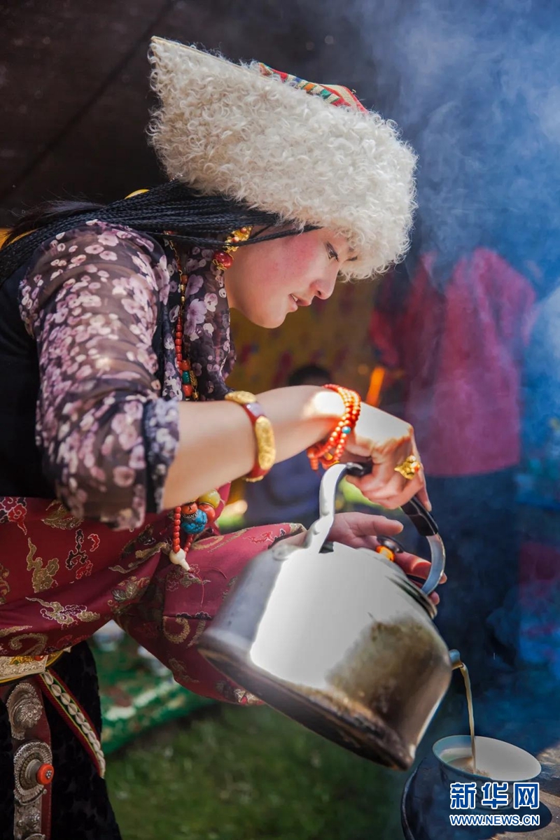 爐霍縣牧民為客人調(diào)制酥油茶。游建中 攝