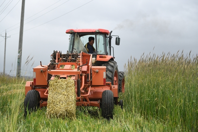 打捆后的飼草料。新華網(wǎng) 潘彬彬 攝