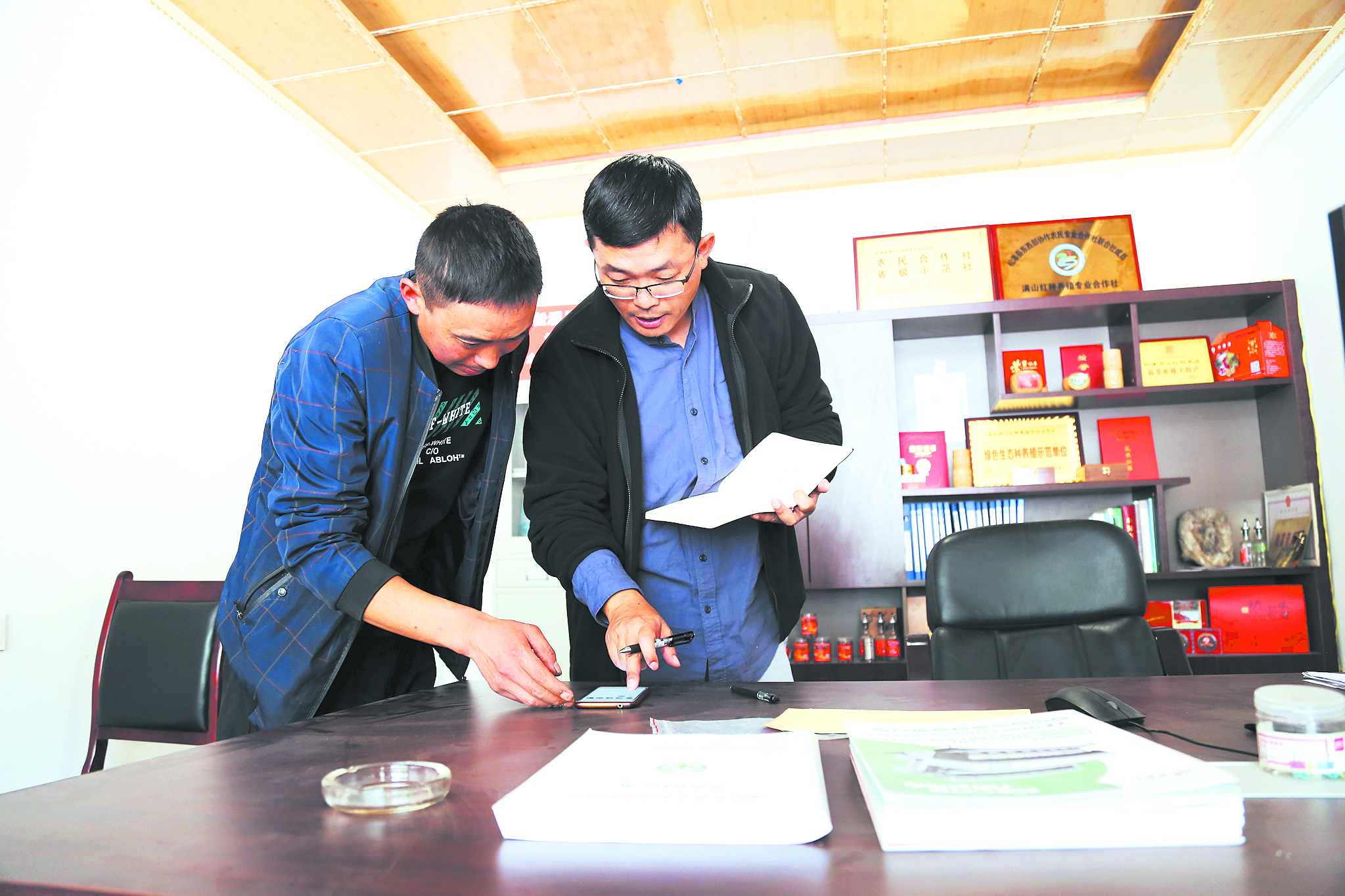 地里花椒采摘忙,村里花椒合作社也是一片繁忙,機(jī)器干燥、抽真空包裝、裝進(jìn)產(chǎn)品盒、貼好地址準(zhǔn)備發(fā)貨。在采訪中,盧洪有手機(jī)微信“叮咚”一聲,他立馬看了一下,“有人給你發(fā)紅包?”“紅包算啥子哦。今年有三成貨是通過(guò)網(wǎng)上銷(xiāo)售,每天,合作社工作人員都會(huì)把訂單信息發(fā)到合作社成員的微信群里?!泵鎸?duì)記者的調(diào)侃,盧洪有顯得很自信。這樣的自信來(lái)自確實(shí)鼓起來(lái)的荷包。
