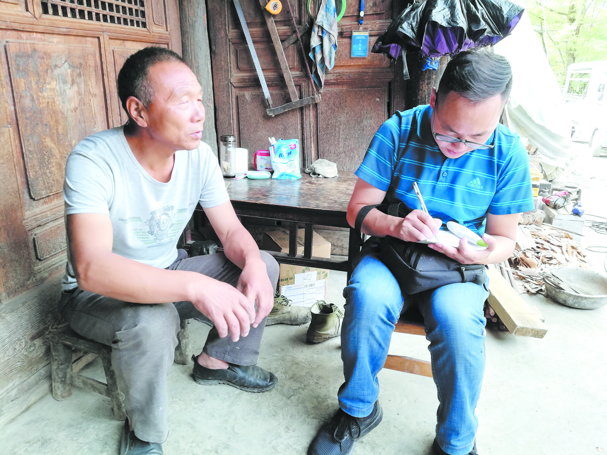 劉洪(右)和村民交流。戴艾岑 攝