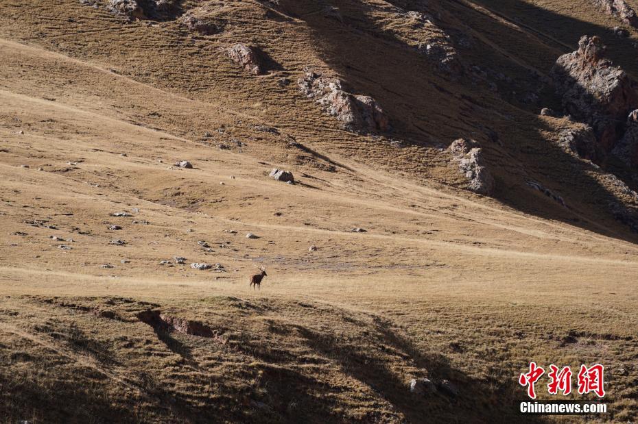 10月15日,位于青海省雜多縣扎青鄉(xiāng)的瀾滄江源頭如油畫般的風(fēng)景。圖為國家二級保護(hù)動物馬鹿。中新社記者 蘇丹 攝