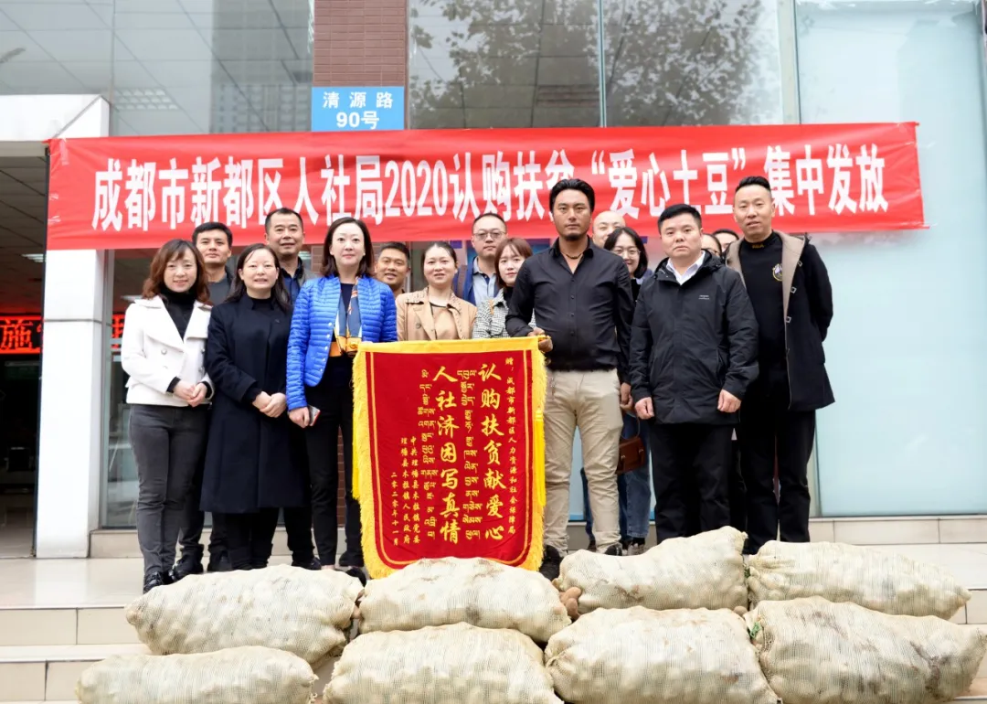 “感謝你們幫助認(rèn)購3萬余斤土豆……扎西德勒!”11月6日上午8點(diǎn)36分,來自理塘縣木拉鎮(zhèn)卡下村的“愛心土豆”車隊(duì)剛在新都區(qū)人社局停車場停穩(wěn),村長降央吉村一個(gè)躍步下車,為等候多時(shí)的人社局同志送上“認(rèn)購扶貧獻(xiàn)愛心、人社濟(jì)困寫真情”的錦旗。
