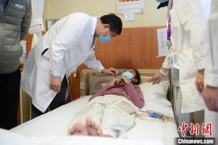 近日,一對(duì)來自青海玉樹、患肝包蟲病的姐弟在北京接受免費(fèi)手術(shù)治療。手術(shù)由中國工程院院士、北京清華長庚醫(yī)院院長董家鴻親自主刀。圖為董家鴻院士為患者查房,了解病情。“同心·共鑄中國心”基金 供圖 中新社 發(fā) “同心·共鑄中國心”基金 攝