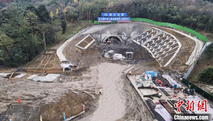 “都四”項(xiàng)目施家山隧道進(jìn)口處施工建設(shè)現(xiàn)場。四川交投集團(tuán)提供