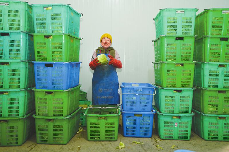 11月26日,木椏村村民策寶寶在冷鏈基地為生菜分揀裝框。她在工廠務(wù)工一年能有2萬元左右的收入。四川日報 向宇 攝